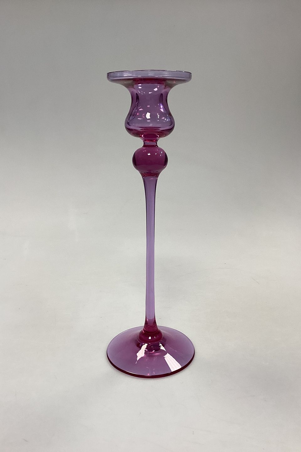 Holmegaard Cassiopeia Candlestick. Designed by Torben Jørgensen in 1984. Color: Pink.