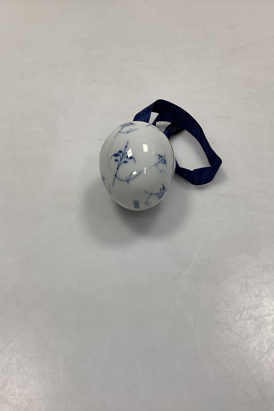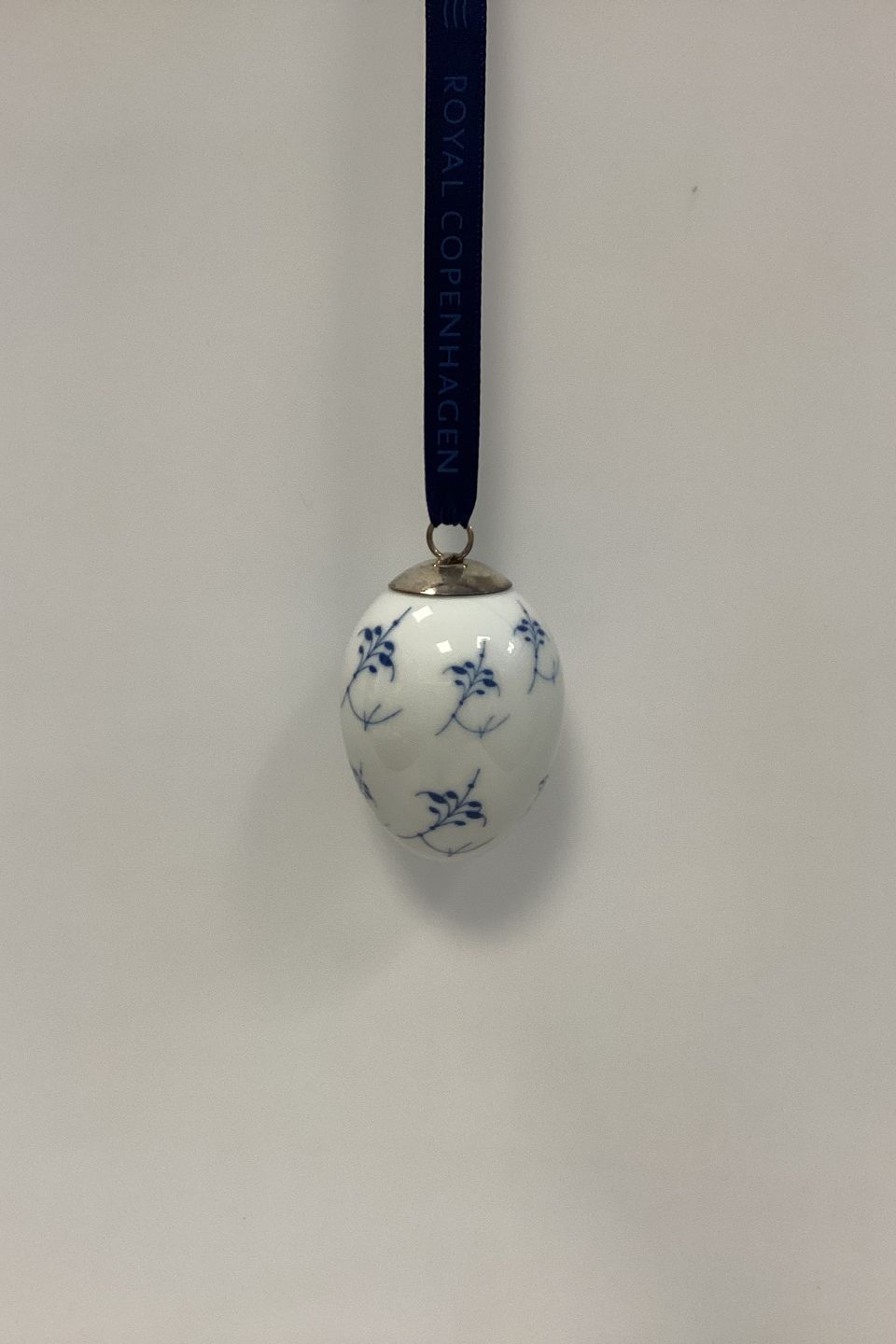 Royal Copenhagen Blue Fluted Plain Easter Egg - Palmette 2005 with ribbon and box.