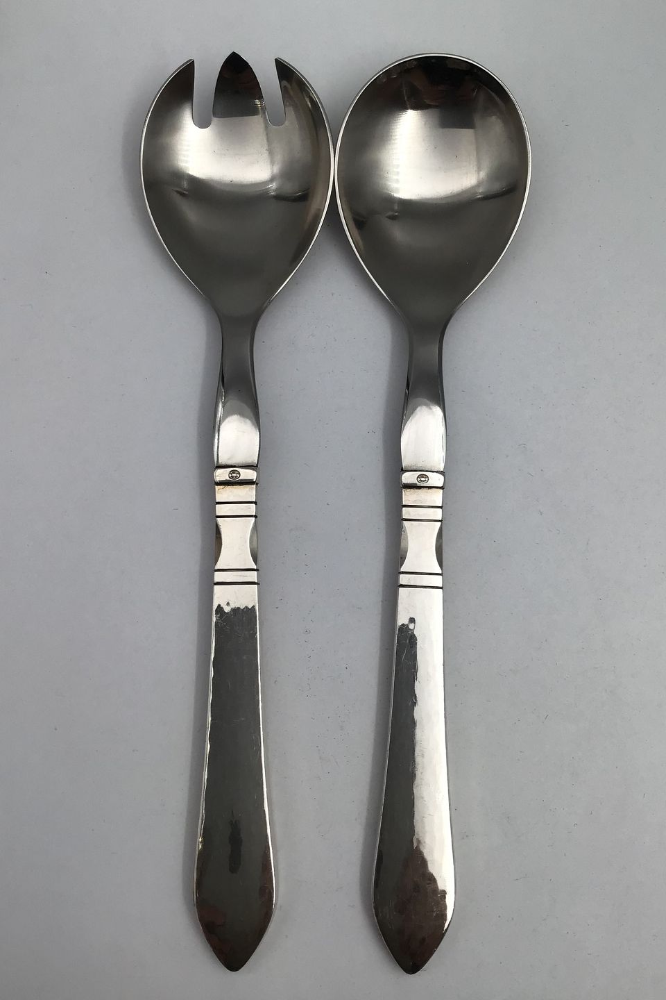 Georg Jensen Sterling Silver / Steel Continetal Salad Servers No. 132