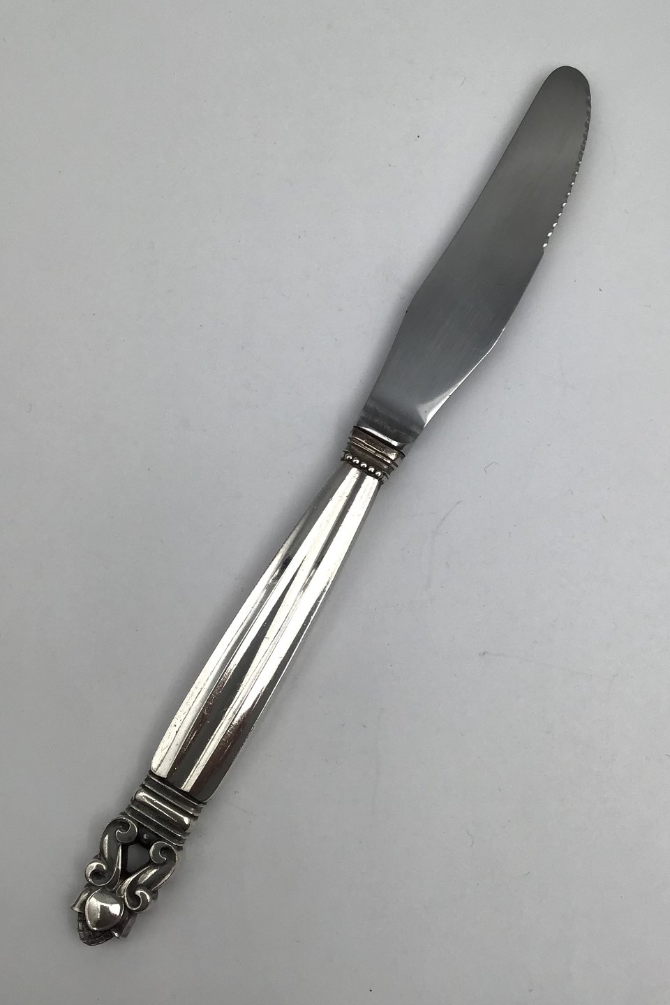 Georg Jensen Sterling Silver Acorn Dinner Knife No 014 (Long handle) (Serrated blade) Measures 22.8cm / 8.98 inch