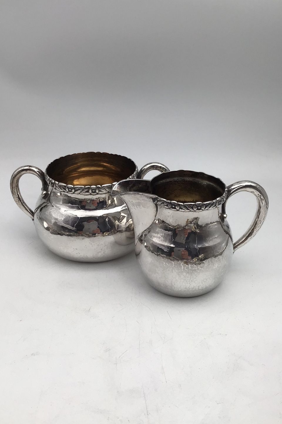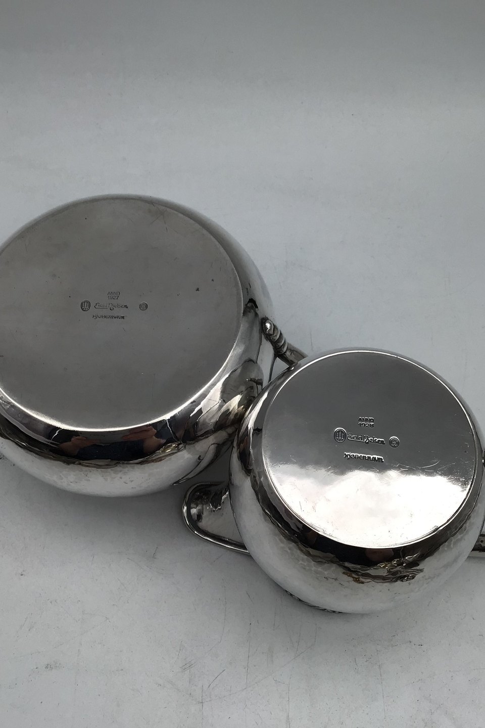 Evald Nielsen Silver Creamer & Sugar Bowl (1927+1928) Measures H 8+9 cm (3.15 inch +3.54 inch) Combined Weight 380 gr (13.4 oz)