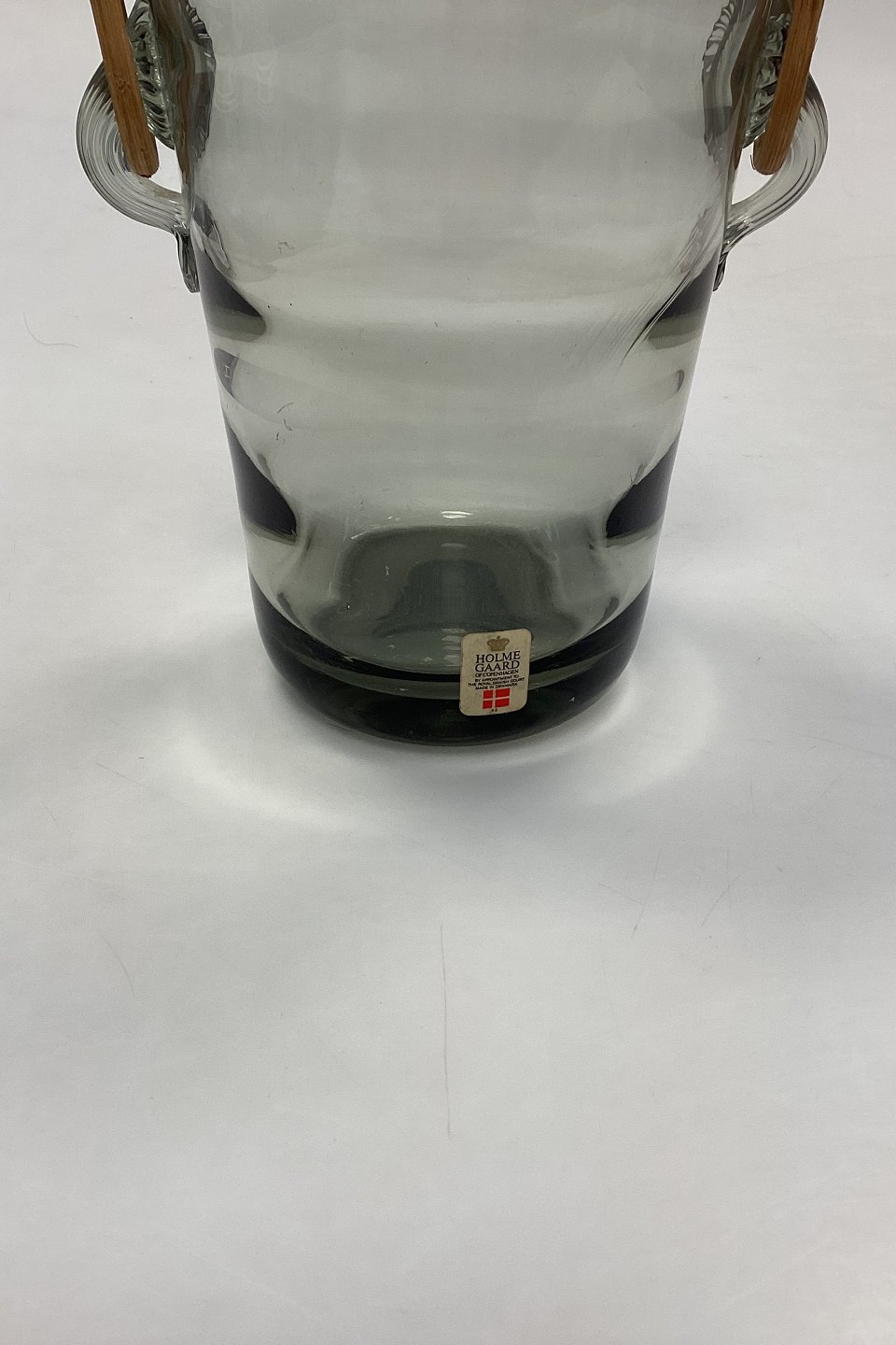 Holmegaard Akva Icebucket with Bast Handle. Color: Grey/Smoke. Designed by Per Lütken. Small scratch in the glass, and the bast on one side has been loose, see photo.
