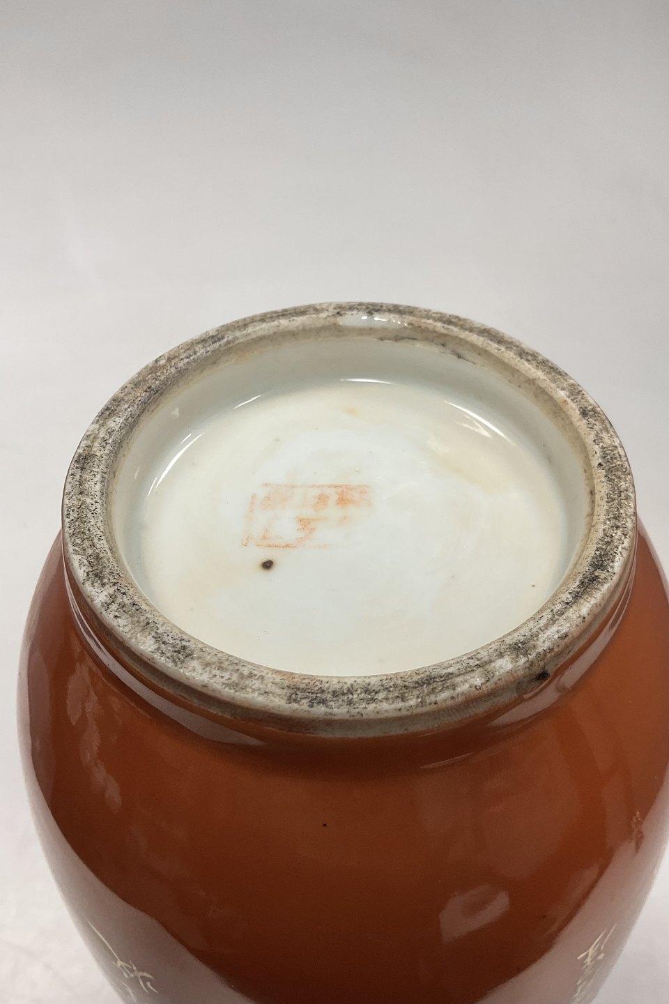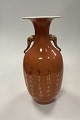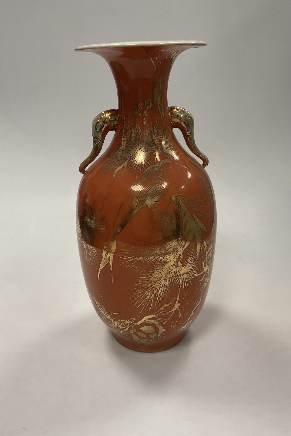 Oriental Chinese Vase in Orange / Gold with Elephant handles