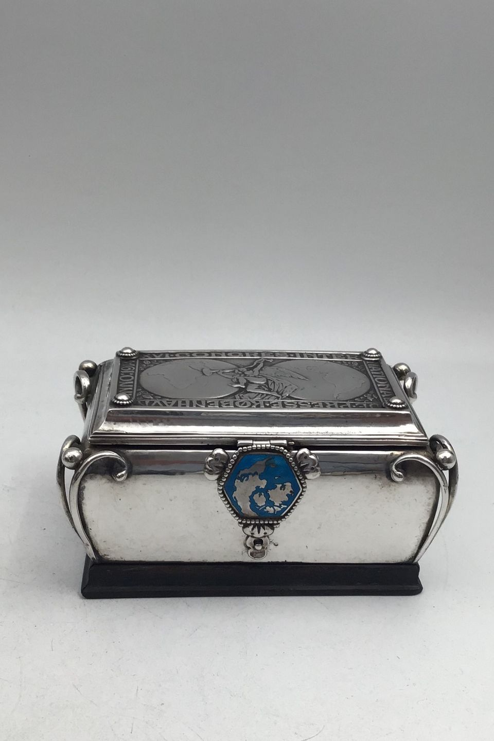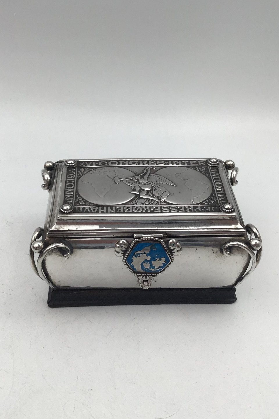 Kay Bojesen Silver Box (1914) Measures H 5.5 cm (2.16 inch) 11 cm x 7.5 cm (4.33 inch x 2.95 inch) Wood lined (Inscription XVI CONGRES INTERNATIONAL DE PRESSE KØBENHAVN ANNO 1914)