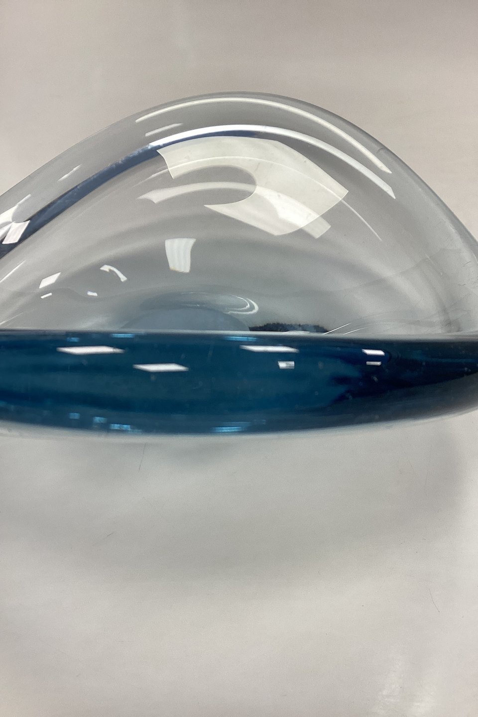 Holmegaard Selandia Glass Bowl. Designed by Per Lütken. Color: Aqua blue. Signed HOLMEGAARD 19 PL 57. Light signs of wear and tear, particularly on the bottom.