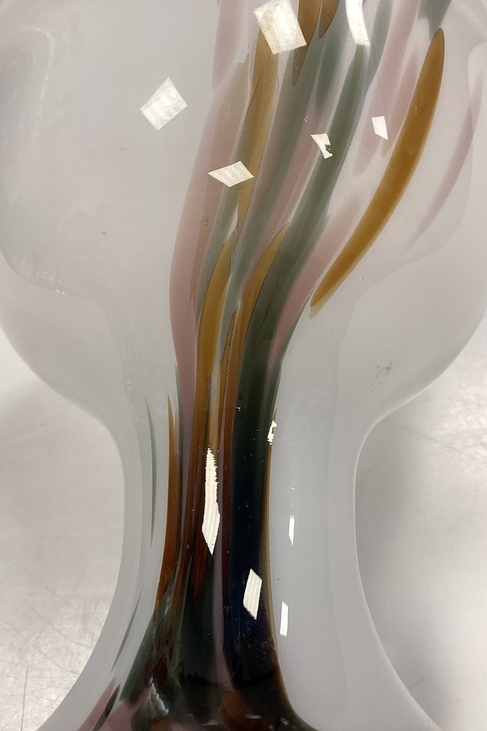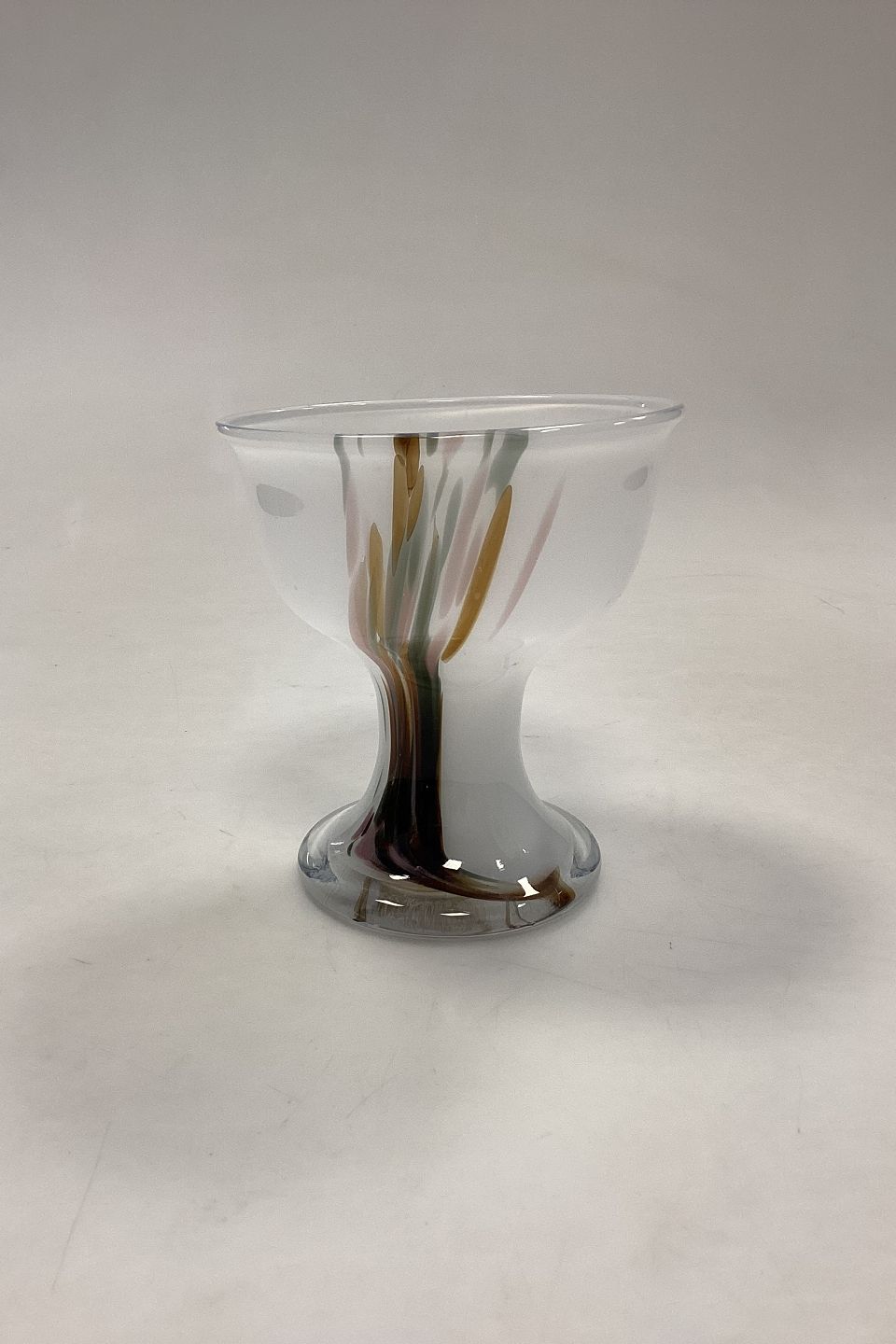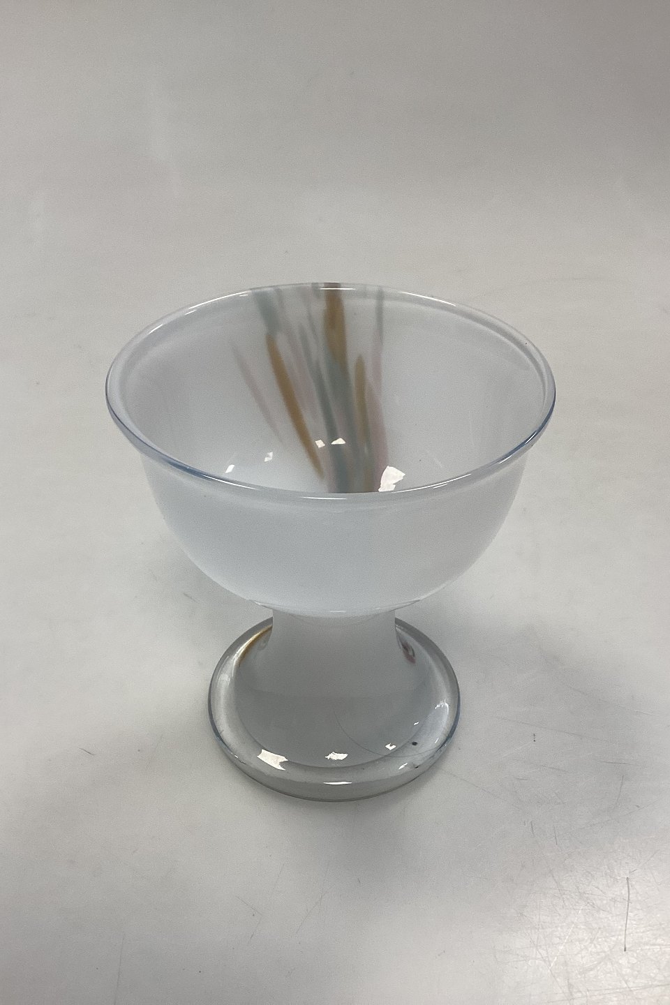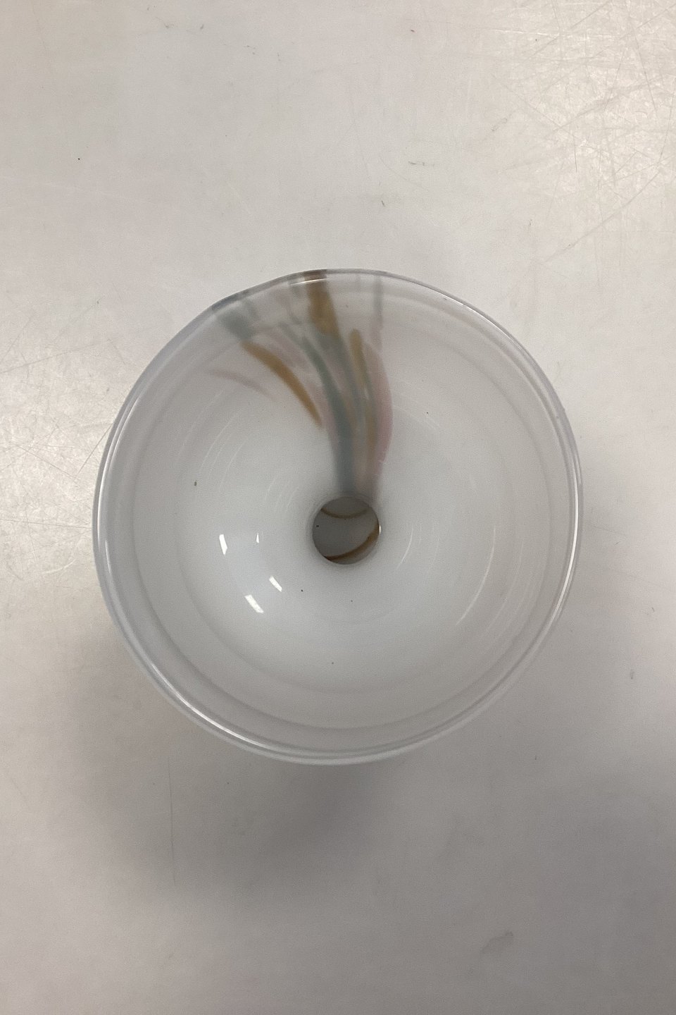 Holmegaard Najade Glass Bowl. Designed by Per Lütken in 1976. Opal white glass with colored edging in green, brown and pink shades.