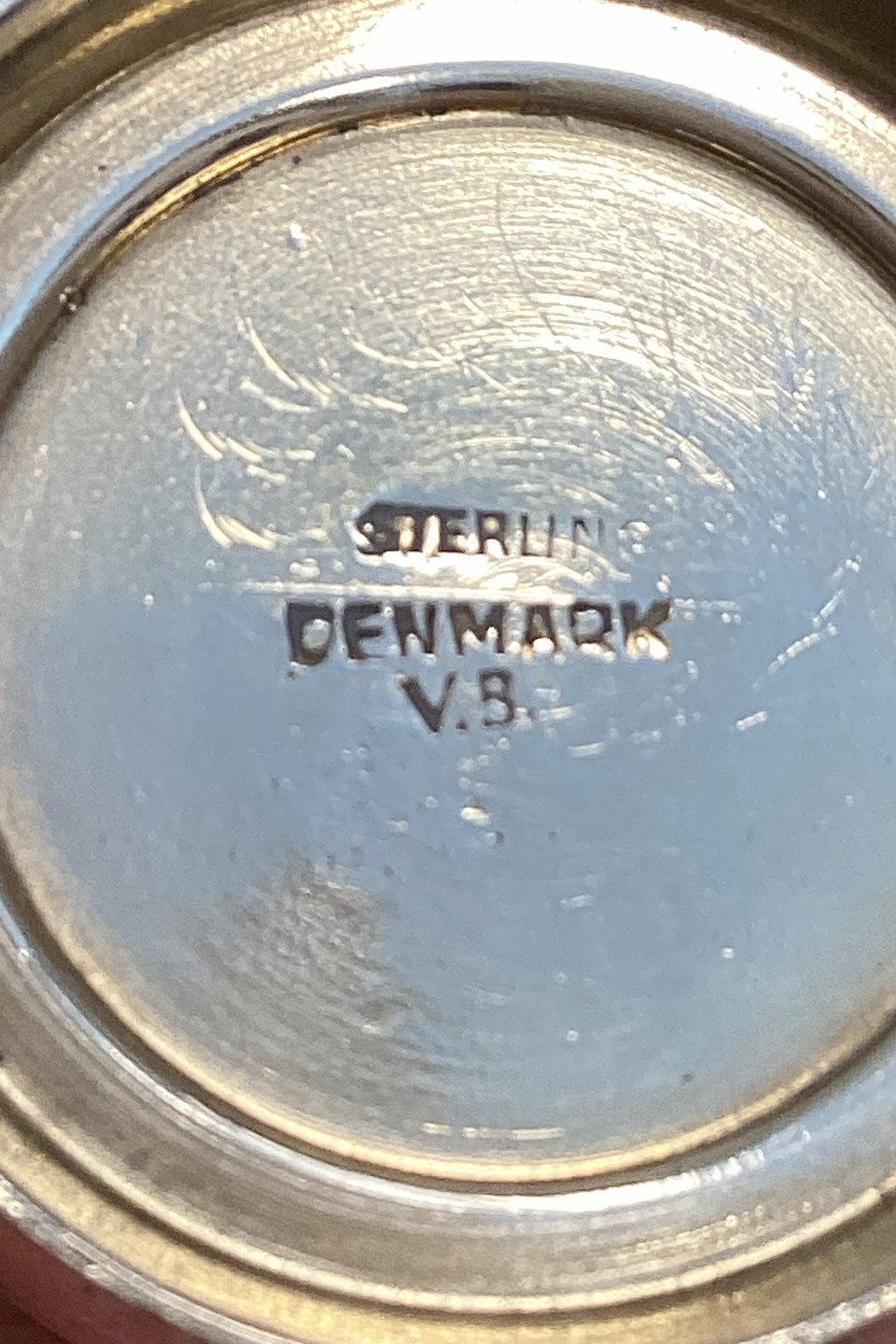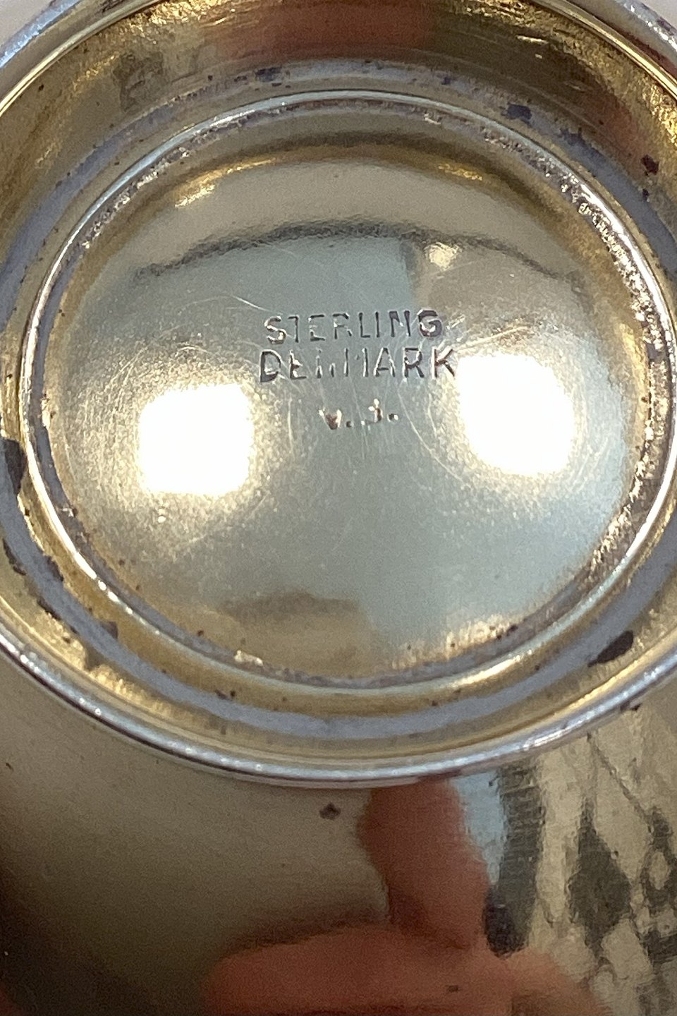 Volmer Bahner Sterling Silver Set with Salt Dish, Spoon and Salt Shaker White enamel
