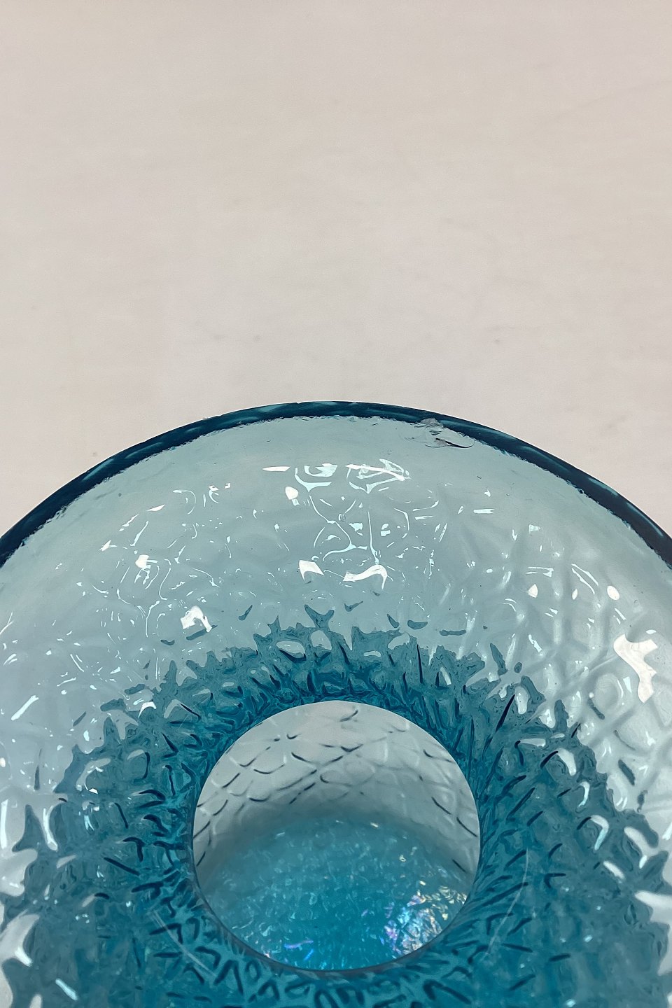 Turquoise Blue Flower Bulb Vase Holmegaard / Kastrup / Fyens Glasværk. Ruffled look. Suitable for hyacinths, tulips etc. Rare color. Chips on the edge, see photos.