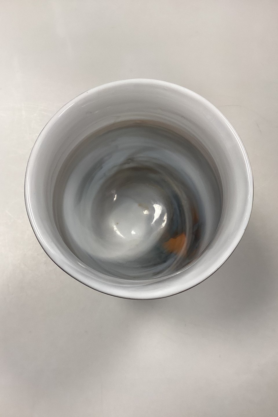 Holmegaard Cascade Glass Bowl / Cup / Vase. Designed by Per Lütken. The bowl itself is opal white inside, with multi-colored brown, blue, and orange tones outside. Signed HG4 PL. Light traces of wear on the bottom.