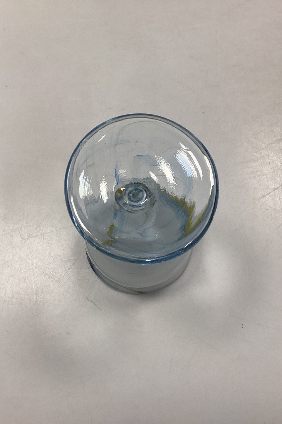 Holmegaard Cascade Wine Glass. Designed by Per Lütken. The glass is opal white at the top, with multi-colored yellow and blue tones. Signed HG4 PL at the bottom.