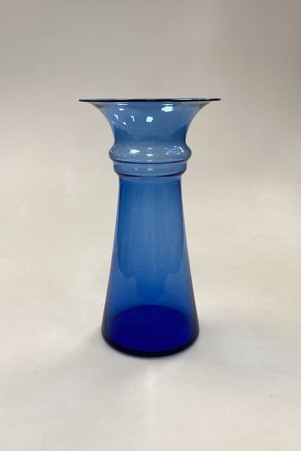 Holmegaard Harmony Vase, transparent blue. Designed by Michael Bang in 1989. Measures 21.6 cm x 11.5 cm / 8.50 in. x 4.52 in.