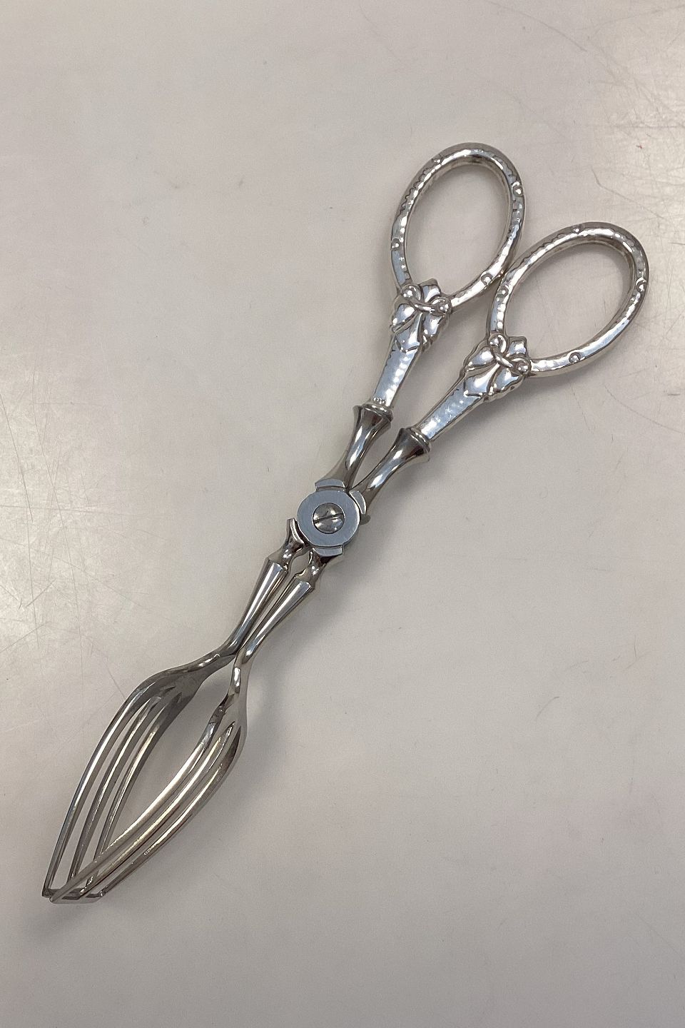 Danish French Lily Silver Cake Tongs