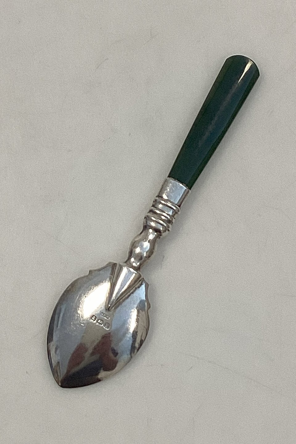 English J.H.W Sterling Silver Sugar Spoon with handle of Green Agat