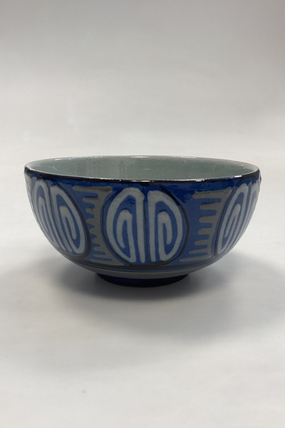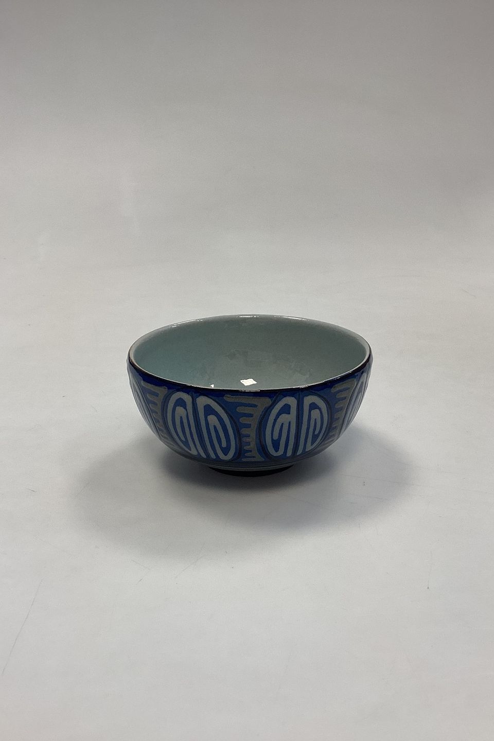 Kähler Ceramics Stoneware Bowl. Motif in blue, gray and black glaze. Signed HAK/Herman August Kähler.