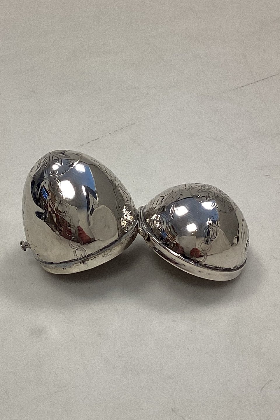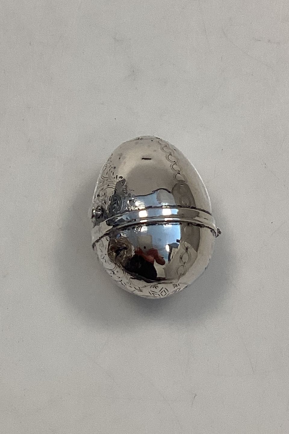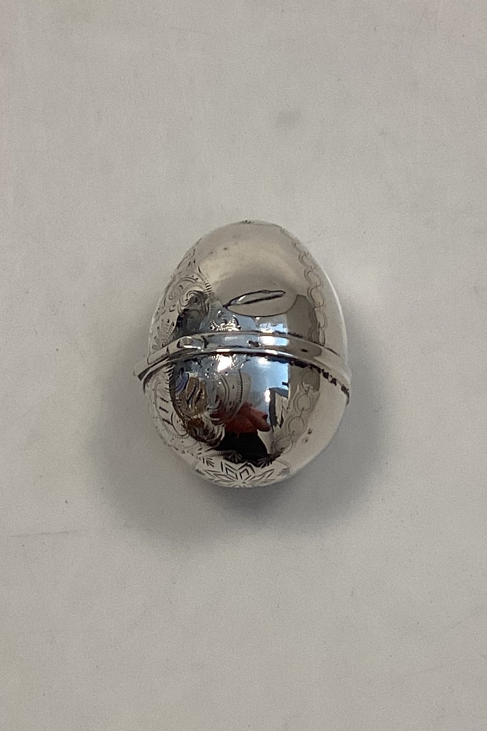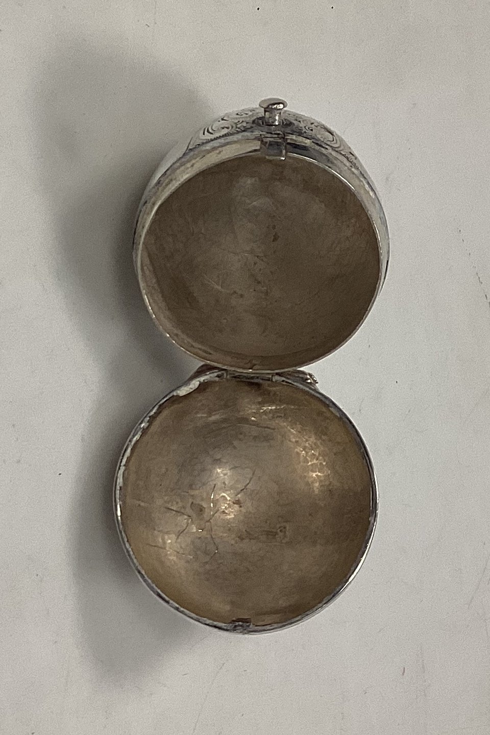 Antique egg-shaped pill box/ snuff box in silver