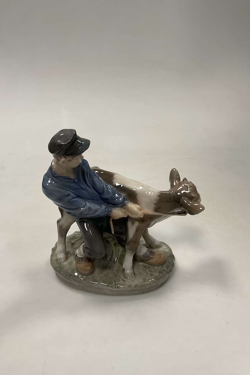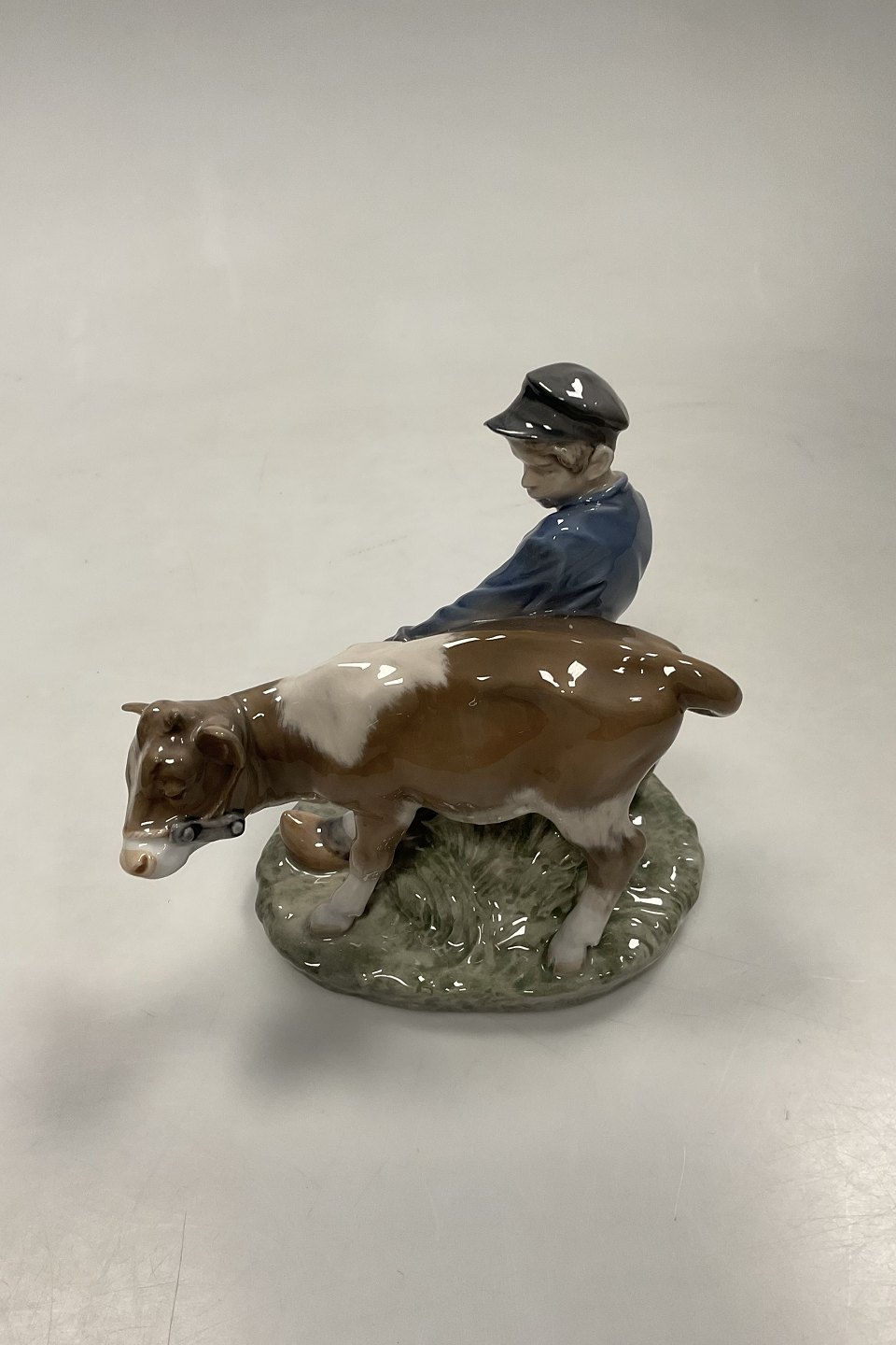 Royal Copenhagen Figurine Boy with Brown Calf No. 772 . Measures 17 cm / 6 11/16 in. x 18 cm / 7 3/32 in. and is in good condition.