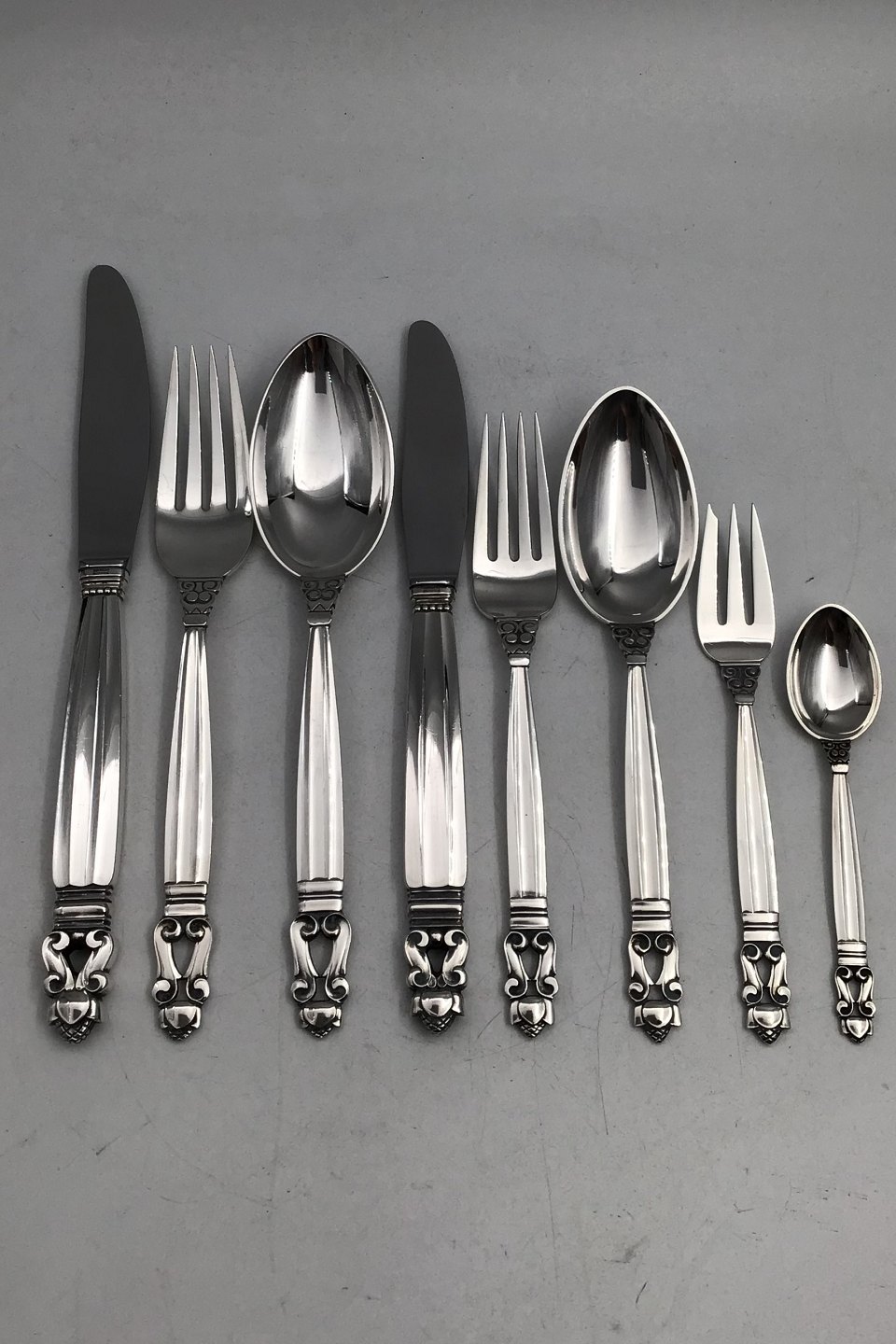Georg Jensen Sterling Silver Acorn Flatware Set 12 People (96 pcs)