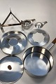 Stelton Peter Holmblad fondue pot set in stainless steel, with medium brown wooden handle