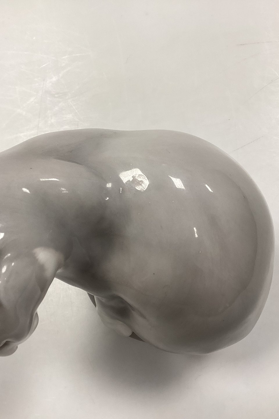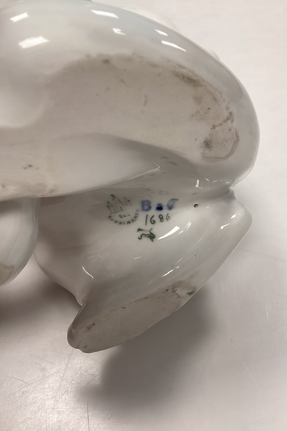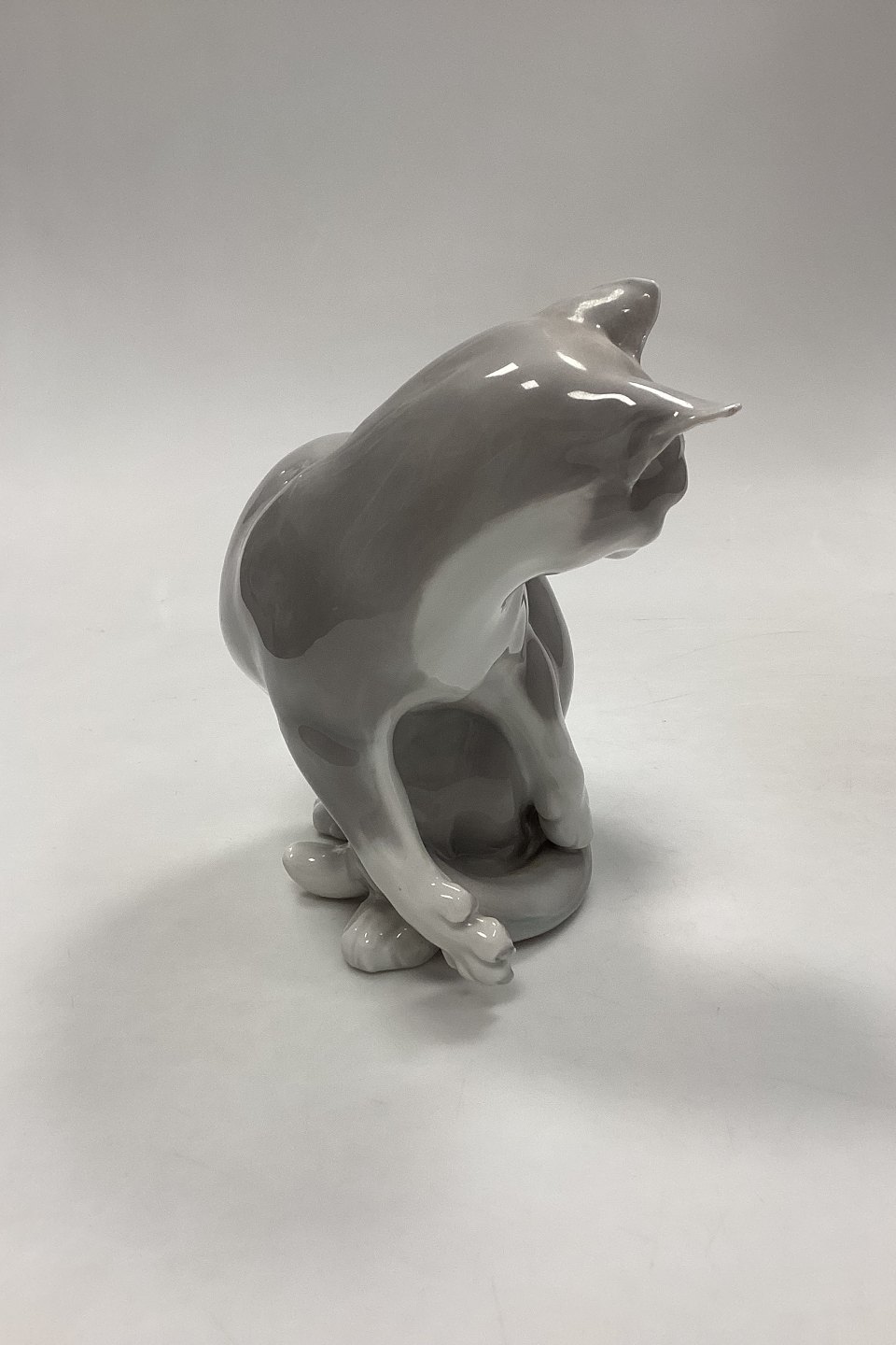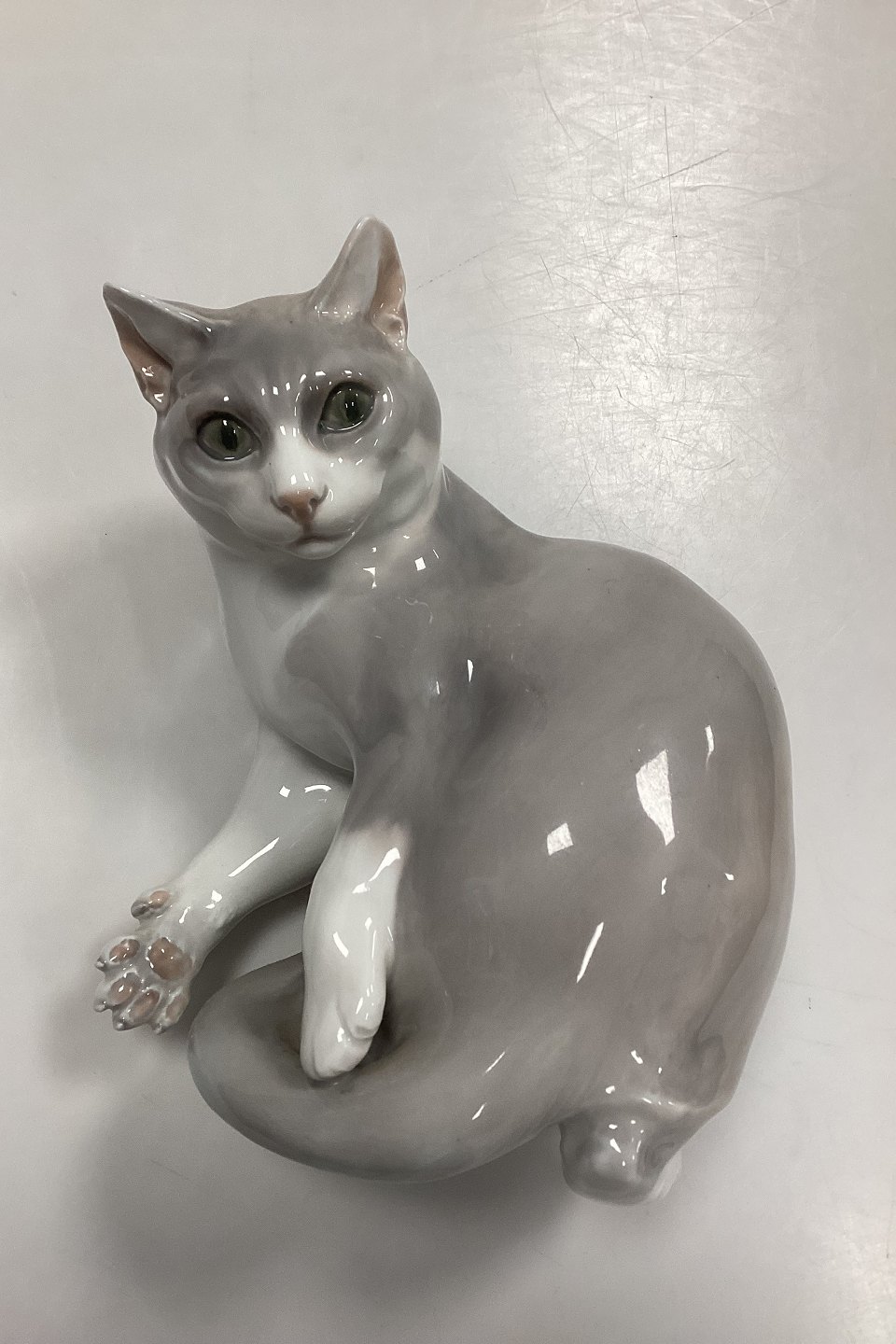 Bing and Grøndahl Figurine of Large Cat No. 1686. Very rare figurine of a grey-white cat with its paw out. From around 1915.