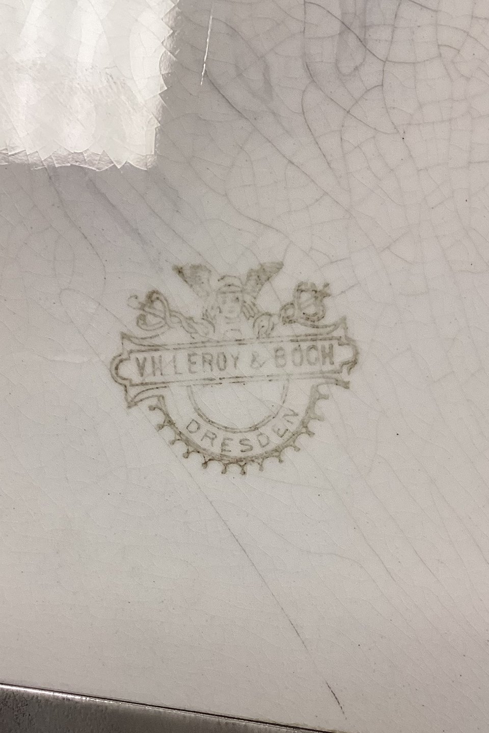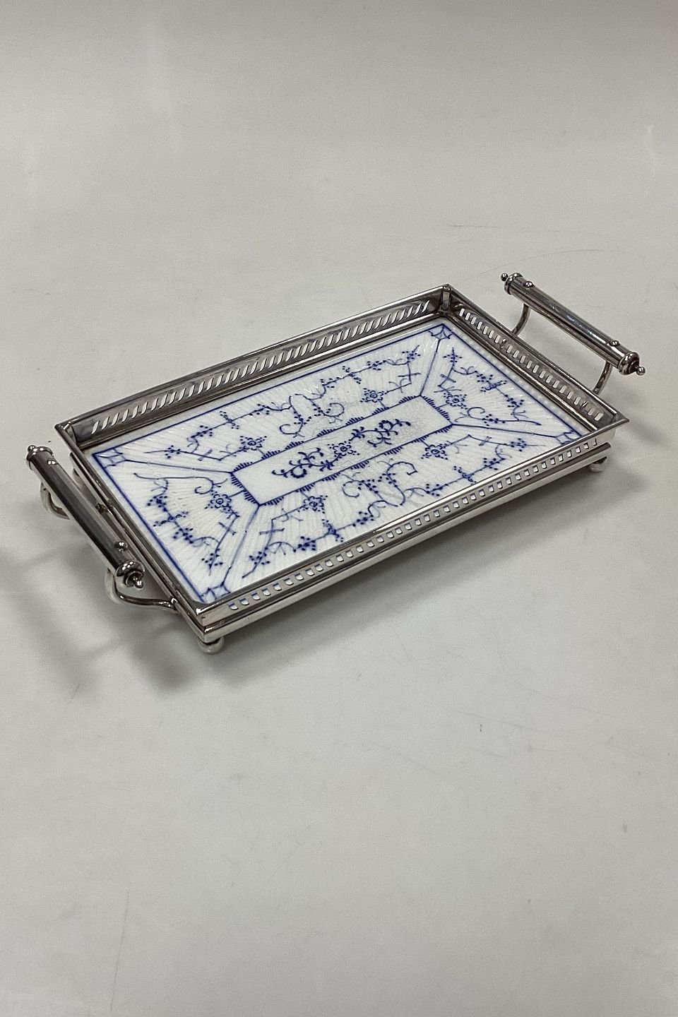Villeroy and Boch Blue Fluted Serving Tray, with metal frame and handle