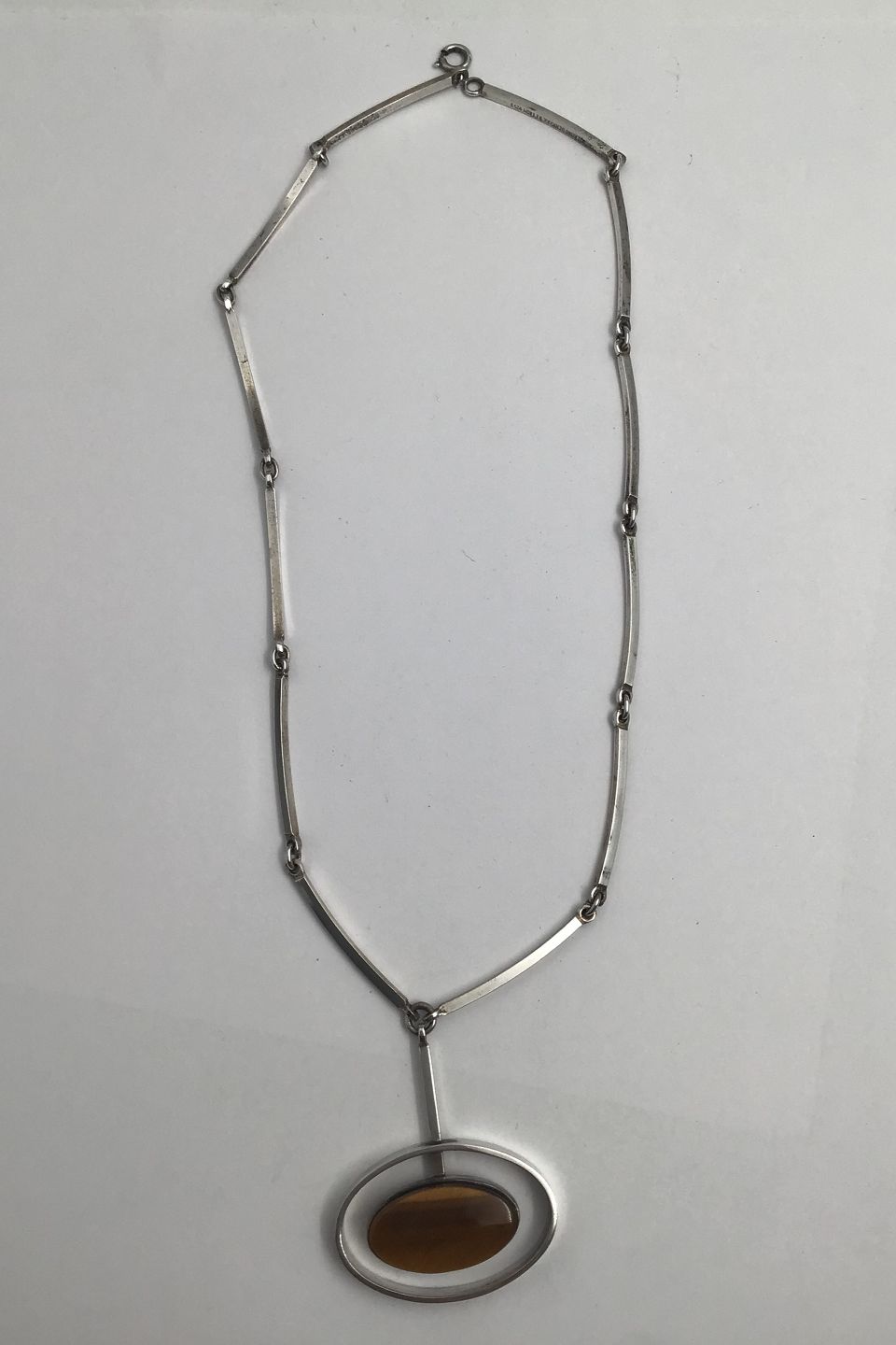 Niels Erik From Sterling Silver Necklace ( Tiger's eye) Measures Chain 46 cm (18.11 inch) Pendant 3.9 cm x 4.6 cm (1.53 inch x 1.81 inch) Combined Weight 31.33 gr (1.10 oz)