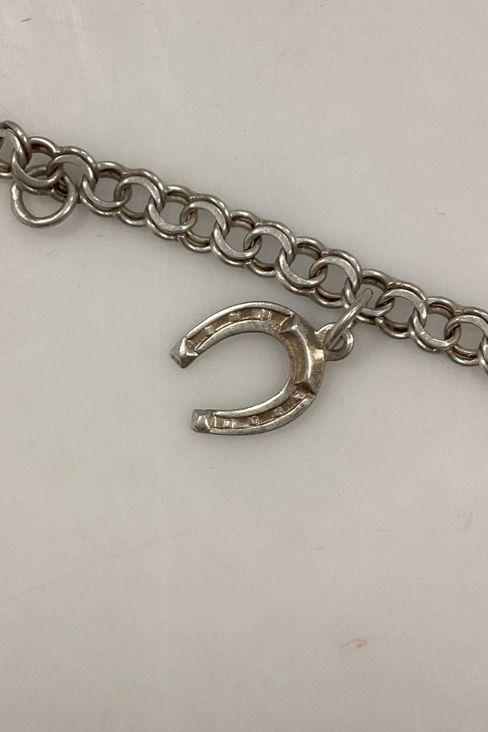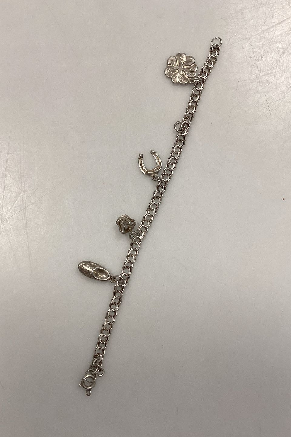 Bismarck bracelet with various pendants, Four-leaf clover, Crown, Horseshoe, and Clog shoe