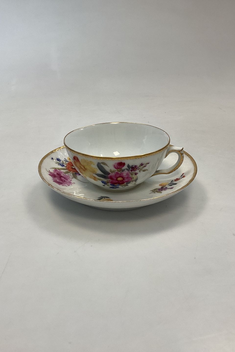 Royal Copenhagen Full Saxon Flower Small Teacup. In fine condition, but some wear on the gold rim.
