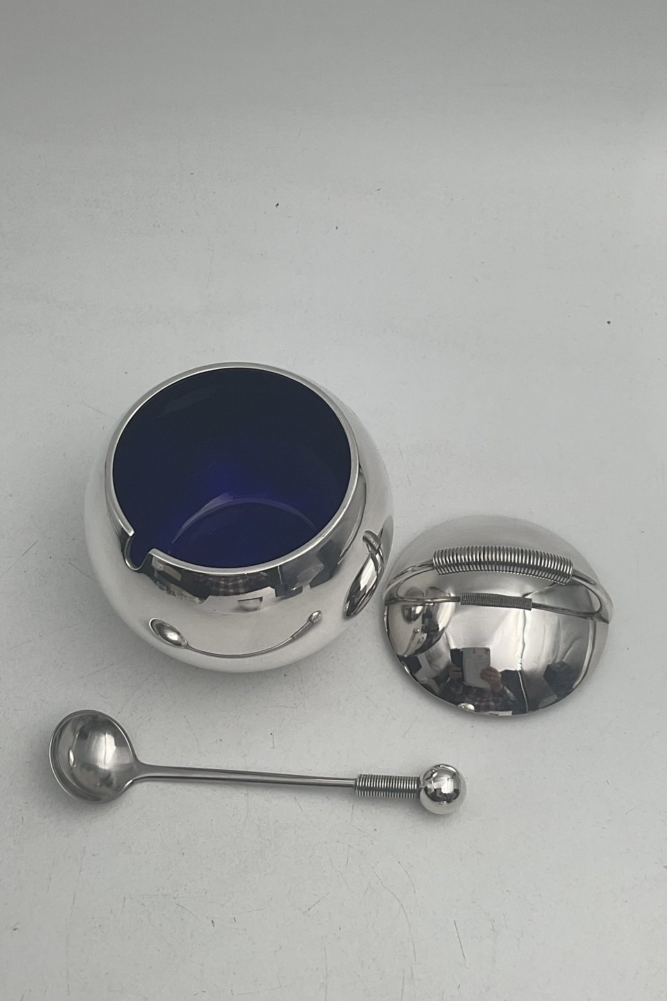 Hingelberg Sterling Silver Mustard Pot with lid and spoon by Svend Weihrauch