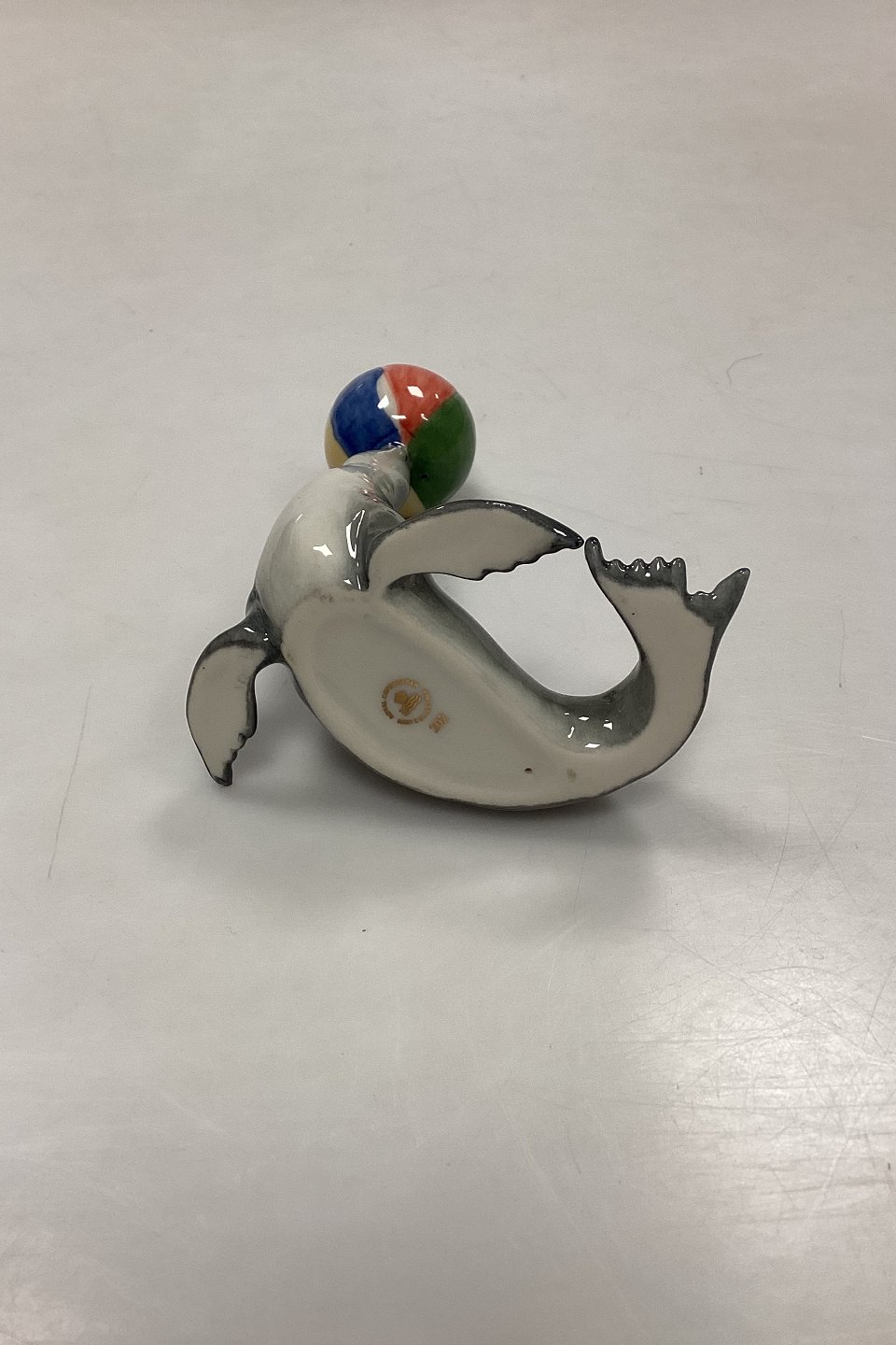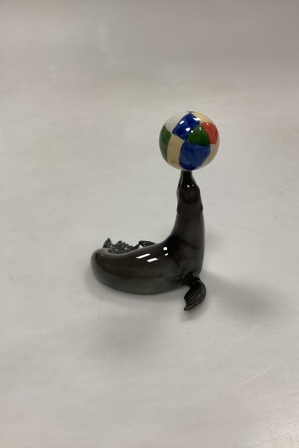 Royal Copenhagen Figurine - Sea Lion with Ball No. 202. Figurine from the Mini Circus Collection. Designed by Svend Vestergaard from 2015-2019. Measures 10 cm / 3.93 in.