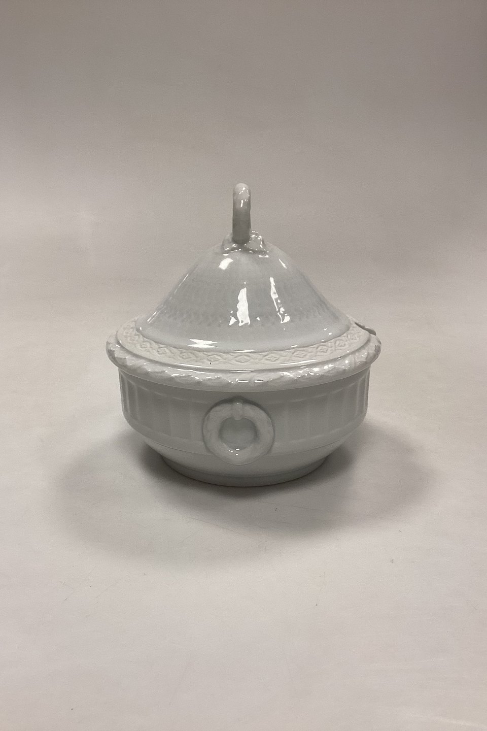 Royal Copenhagen White Fan Compote Bowl with Lid No. 170/171. Measures 13.5 cm x 14 cm / 5.31 in. x 5.51 in.