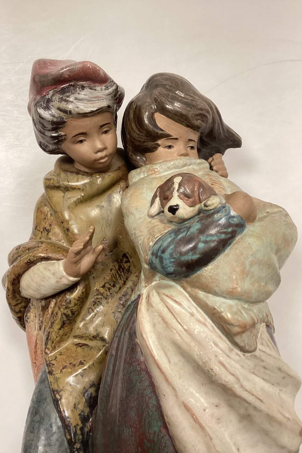 Lladro Stoneware Figurine of Girl and Boy with Dog - Facing the Wind. Designed by Juan Huerta, Spain.