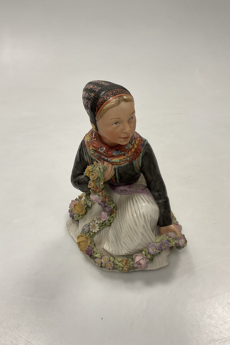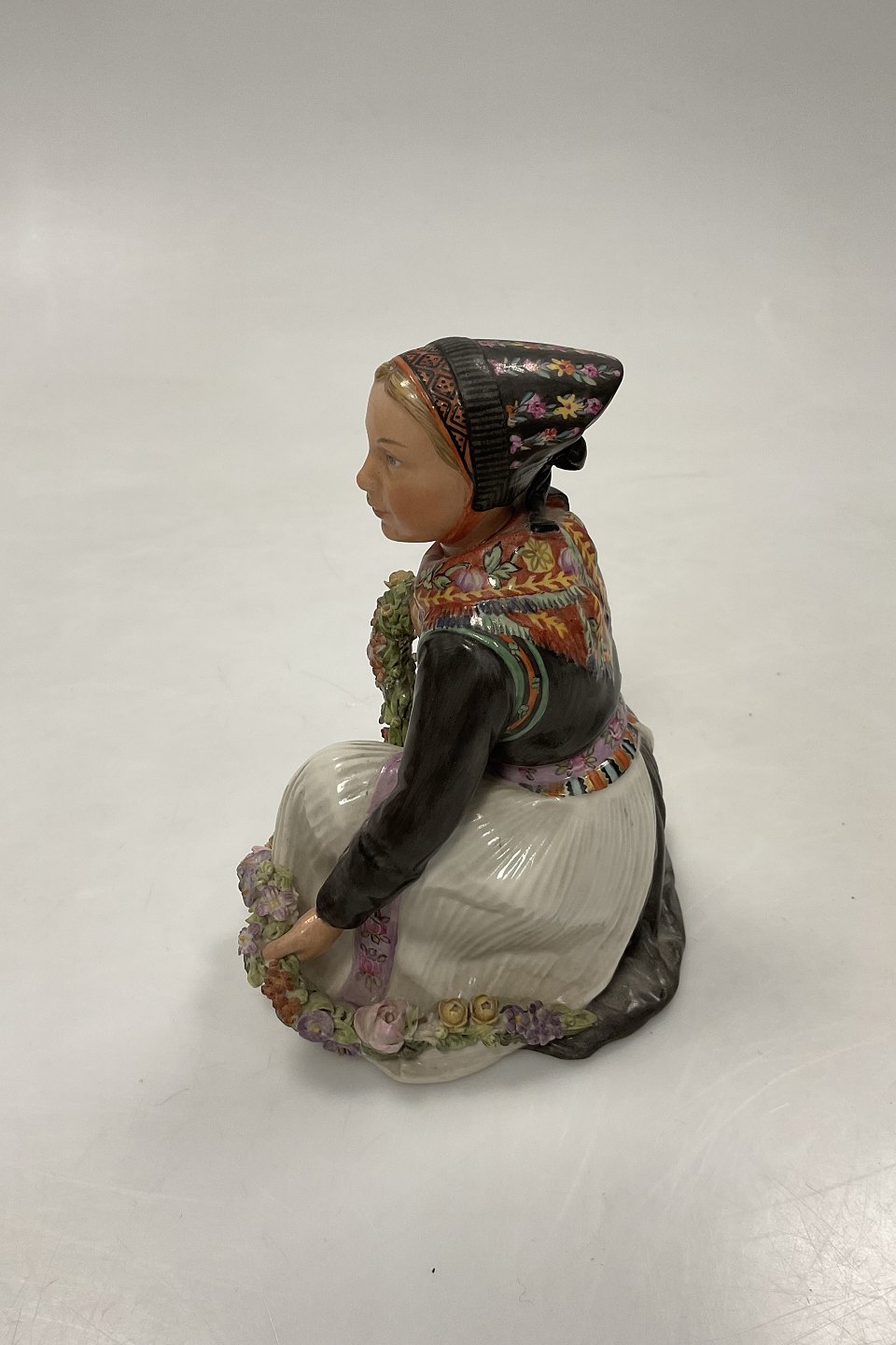 Royal Copenhagen Overglaze figurine of Amager Flower Girl No. 12412.