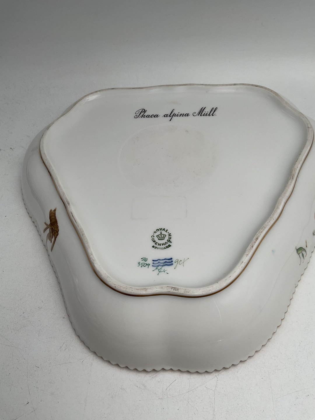 Royal Copenhagen Flora Danica Triangular Bowl No 3509.