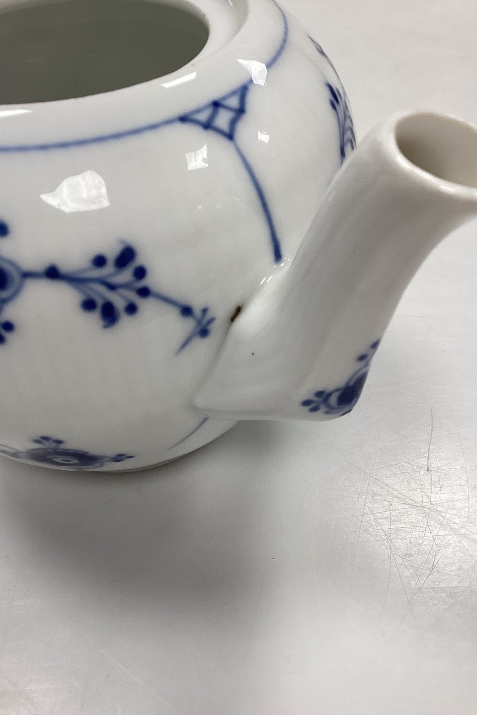 Royal Copenhagen Blue Fluted Plain Tea Pot, small No. 258 without lid. Measures 19.5 cm / 7.67 in. from spout to handle. Height 11 cm / 4.33 in. 2nd Quality with small firing defects, see photos.