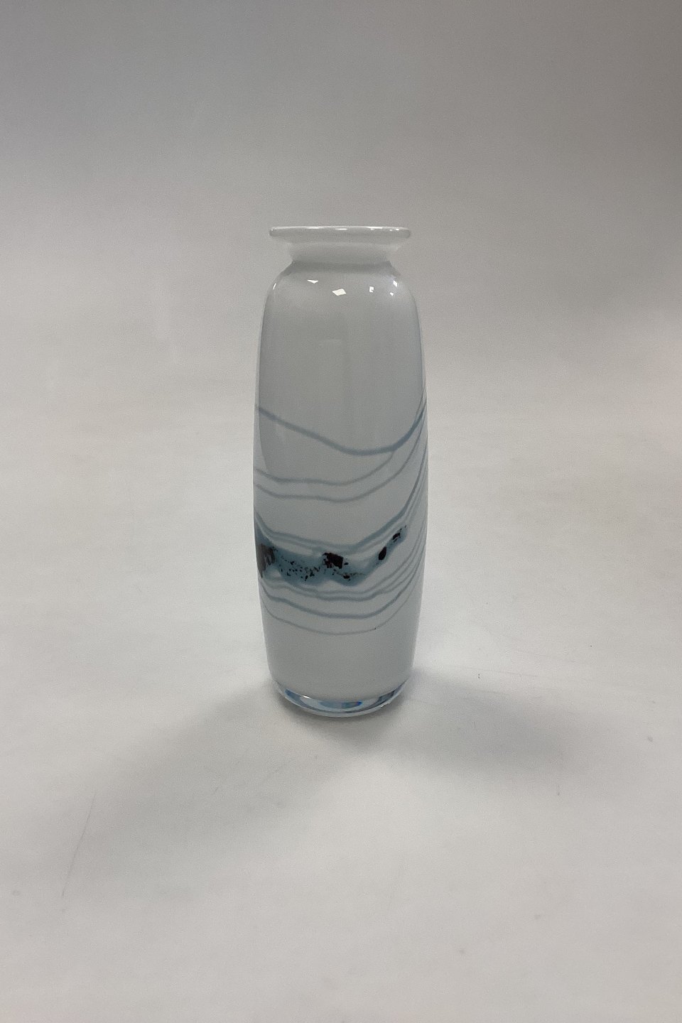 Holmegaard Atlantis Vase. White with blue decoration. Designed by Michael Bang.