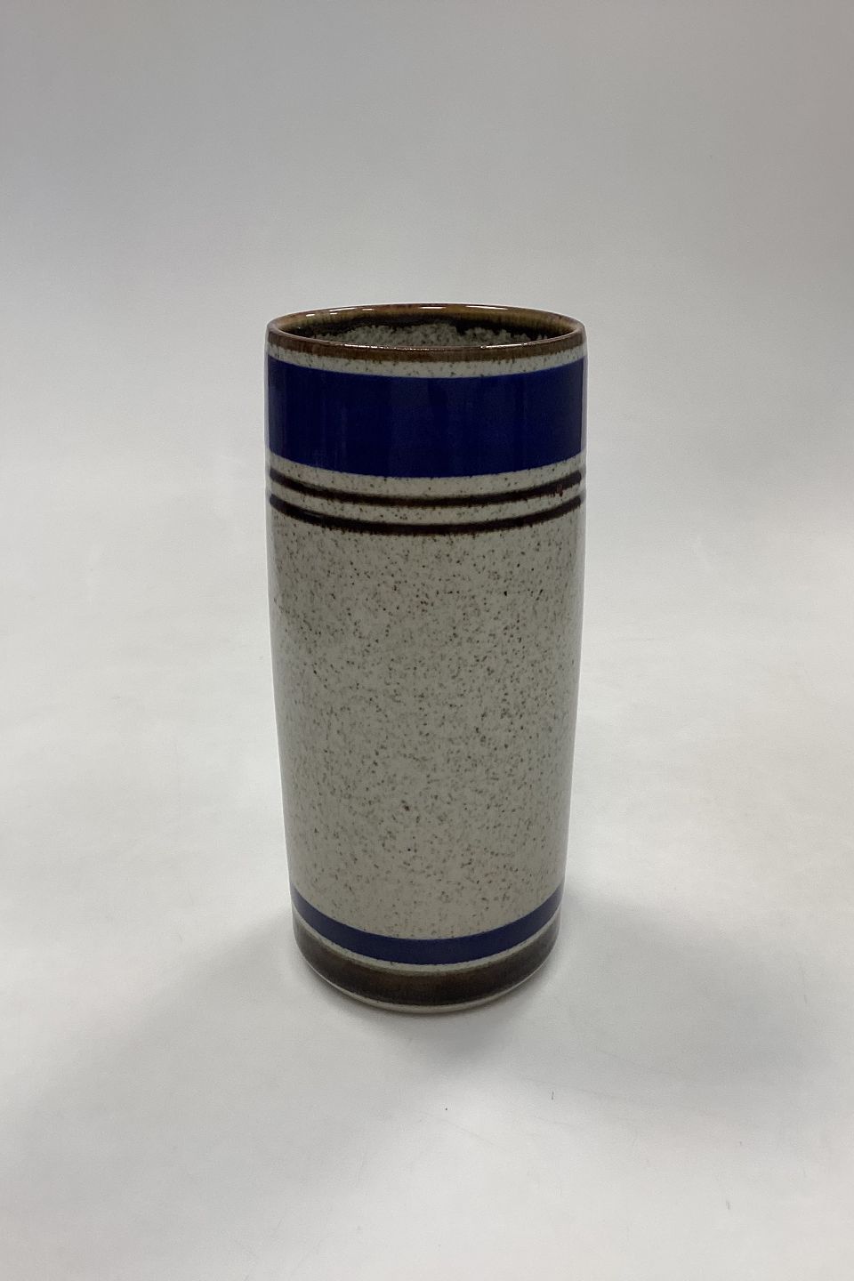 Michael Andersen Ceramics Stoneware Vase. Beige melange with brown and dark blue stripes.